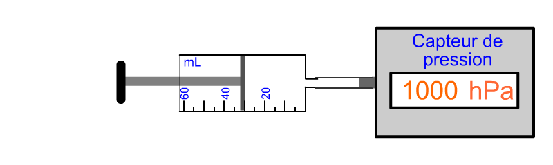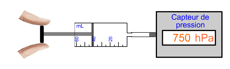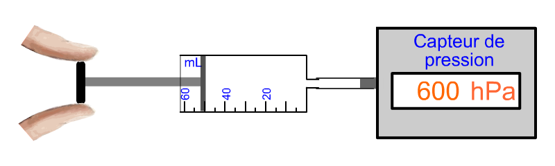 On tire et pousse sur le piston et on reporte les résultats dans le tableau en utilisant les schémas suivants :
